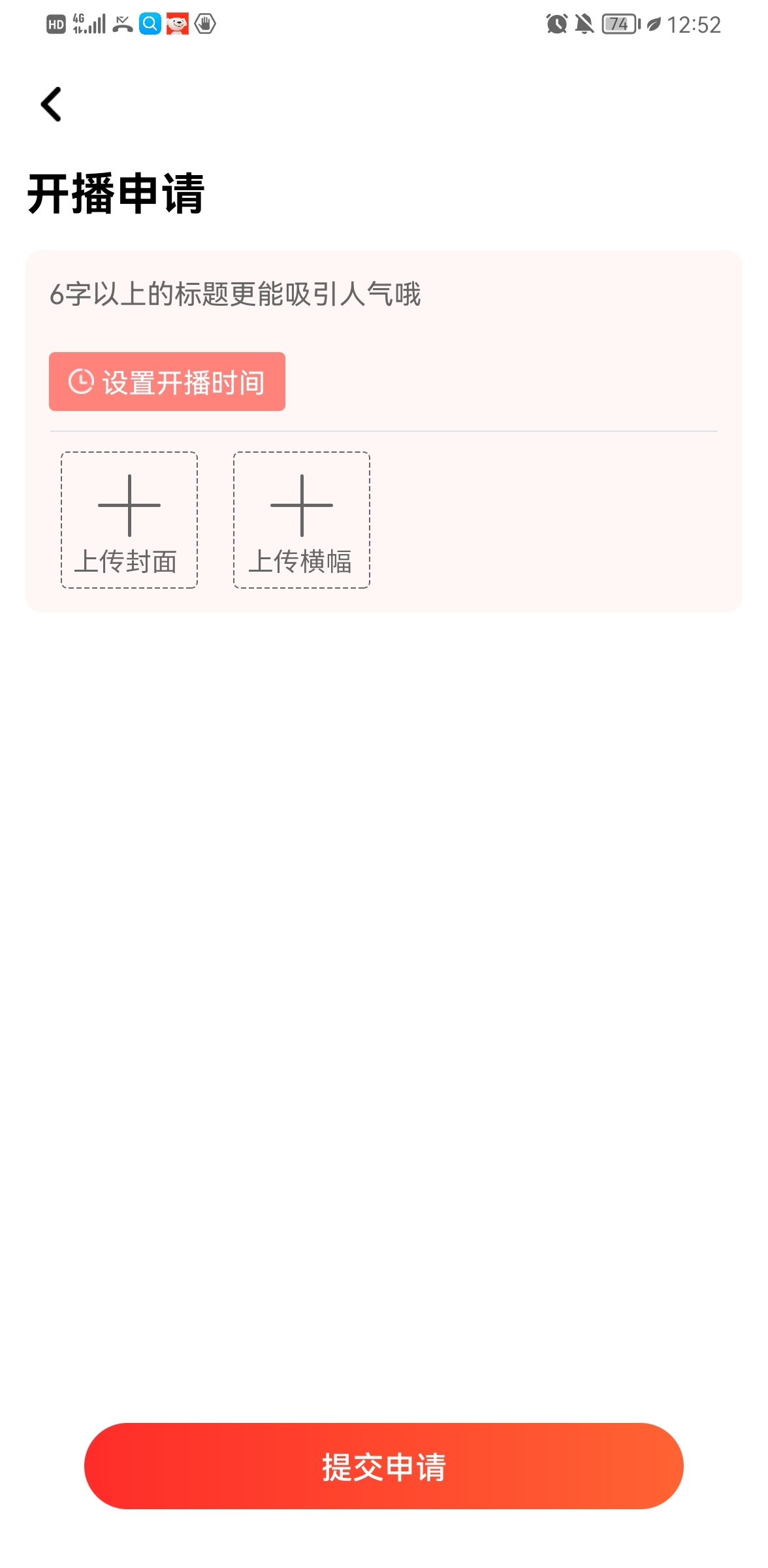 填写标题、开播时间、上传直播封面和横幅,点击提交申请即可