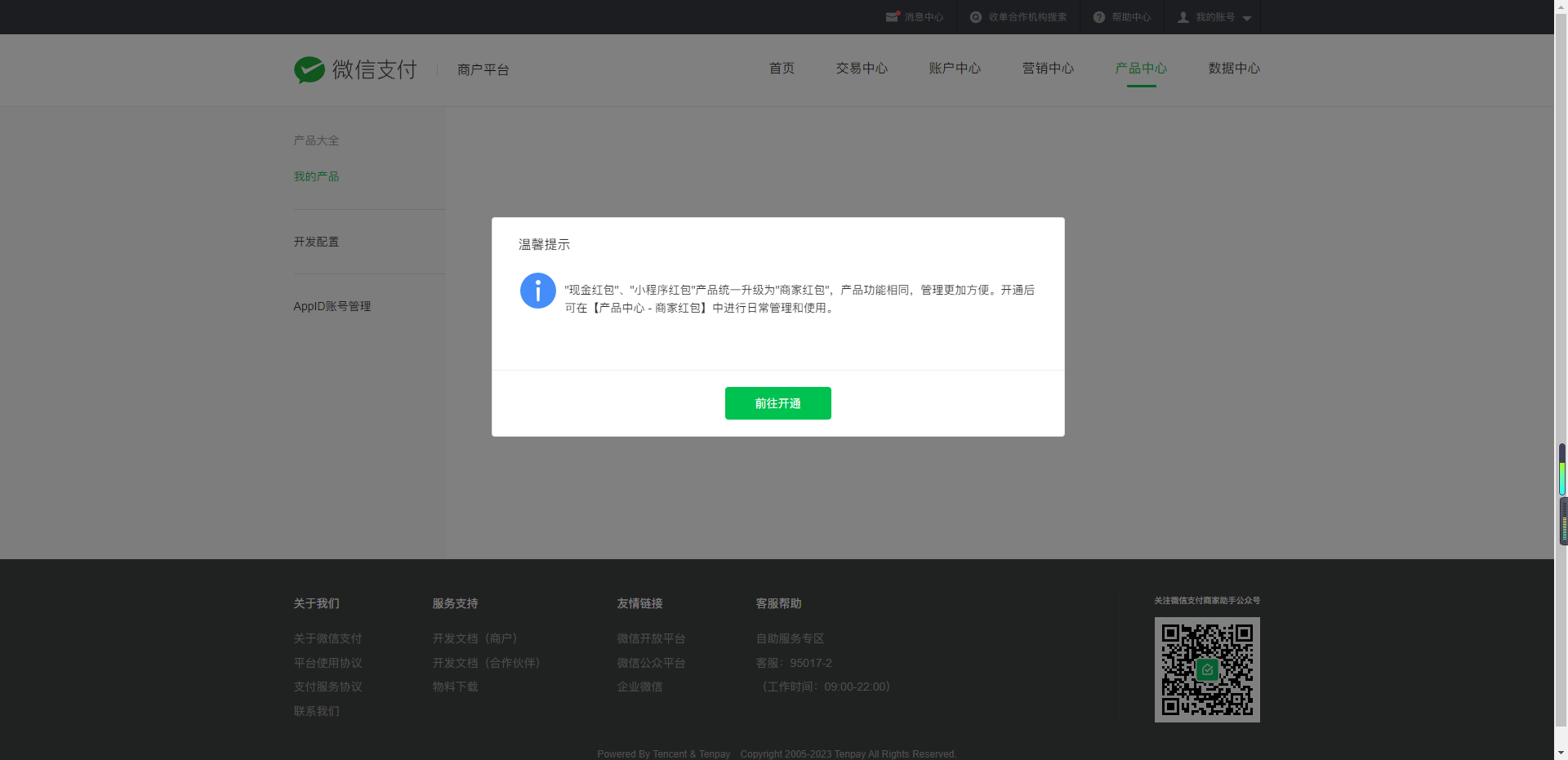 注:满足上述条件的商户可以尝试开通,系统会根据商户号的交易健康度进行综合判断。如无法开通,请保持正常健康交易,后续再尝试开通。